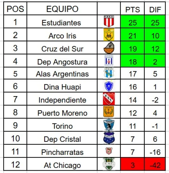 Además en “La Caldera” del barrio Virgen Misionera, también hubo reparto de puntos: Arco Iris y Torino empataron 1 a 1. El conjunto de El Bolsón se puso en ventaja con gol de Facundo Grande, mientras que Lucas De Santi marcó la igualdad para el “Misionero”. Con este resultado, Arco Iris alcanzó los 23 puntos y ya piensa en la próxima instancia del certamen. Torino, en tanto, se mantiene en la zona baja, a la espera de lo que ocurra con el partido pendiente ante Puerto Moreno.